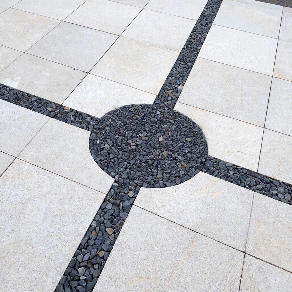 - Почему: мелкий модуль позволяет легко повторить любую извилистую траекторию. Колотая фактура идеально сливается с природным окружением, а галтованная (со скруглёнными гранями) безопасна для босых ног. Швы можно засыпать грунтом и засеять травой для эффекта «прорастающей» тропинки.