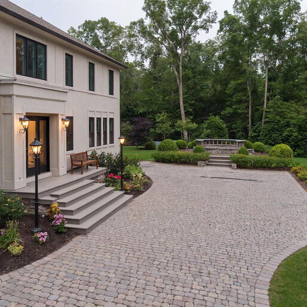 Много вариантов фотоэскизов укладки гранитной брусчатки для дорожек, площадей, пространства рядом с домом, парковок, зон отдыха, а также других объектов представлены в нашей статье: "Благоустройство участка: 14 идей с использованием гранитной брусчатки"
